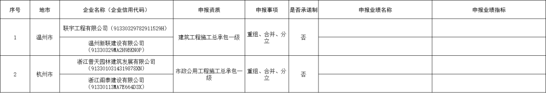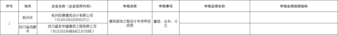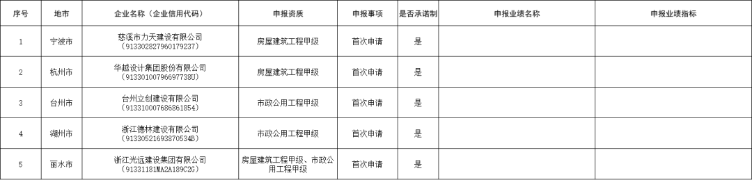 公示显示,2家建筑业企业申报施工总包壹级资质重组、合并、分立;1家工程设计企业申报专项甲级资质重组、合并、分立;5家监理企业首次申请工程甲级资质。