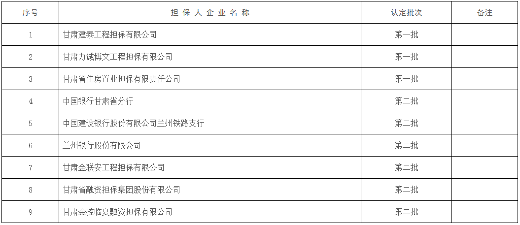 已认定合格担保保证人名录