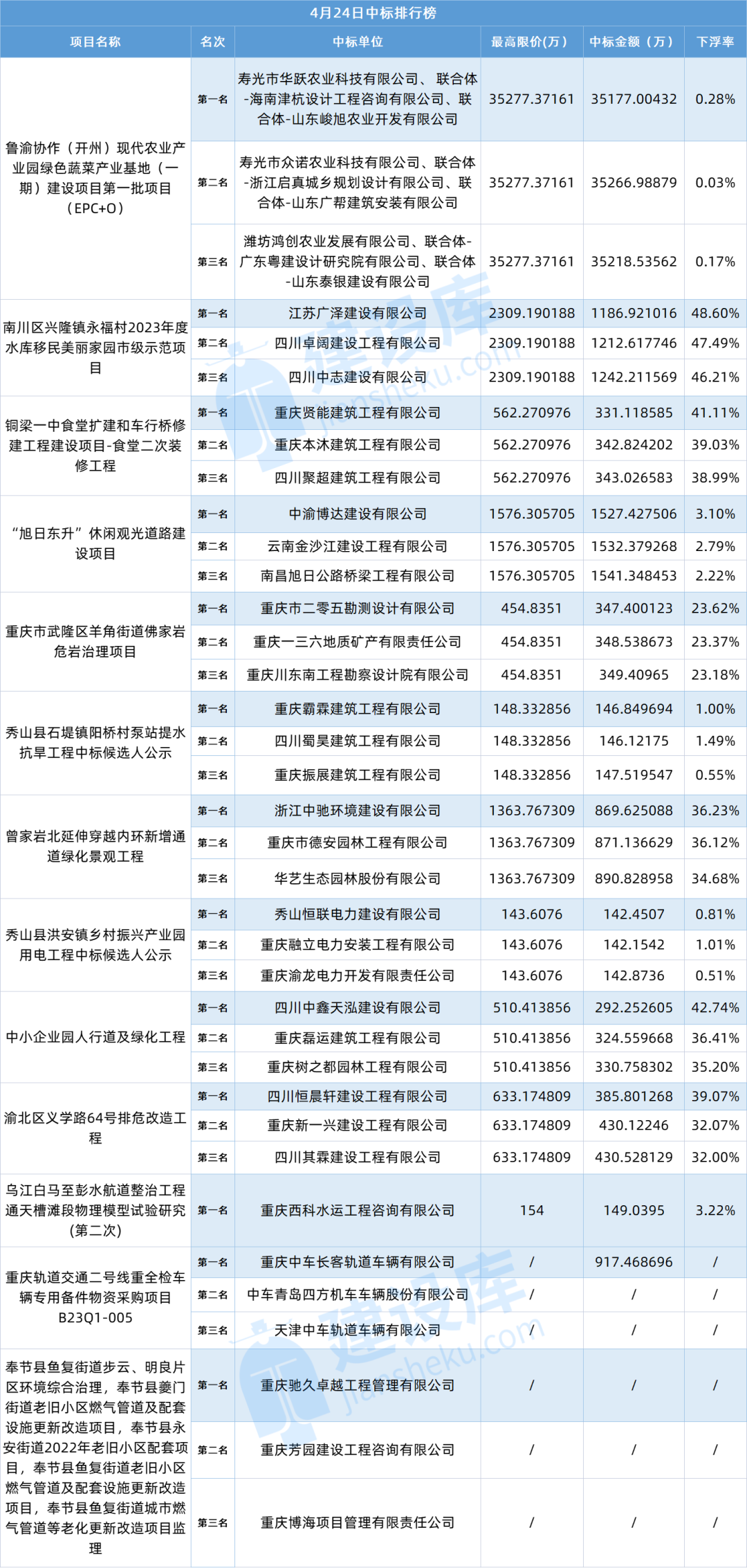 小tips:本文数据由建设库友情提供,数据源于重庆各大公共资源交易中心官方网站,信息真实可靠。