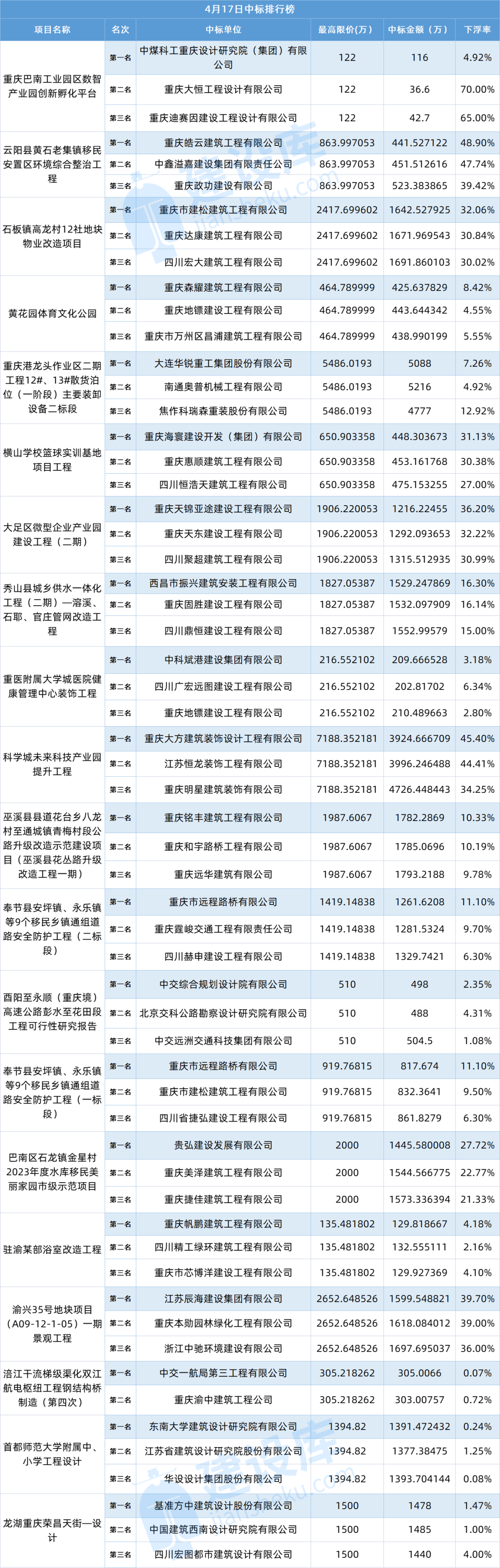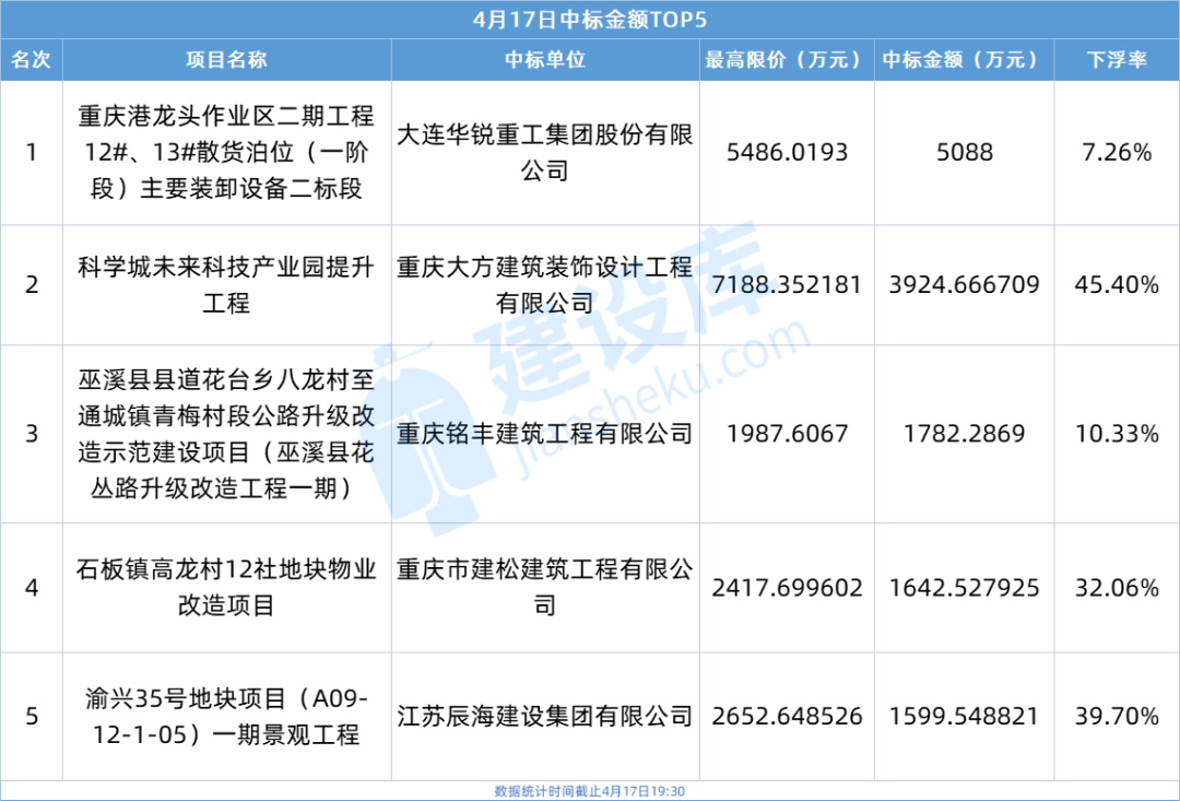 小tips:本文数据由建设库友情提供,数据源于重庆各大公共资源交易中心官方网站,信息真实可靠。