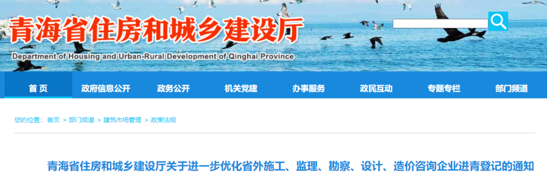 近日,青海省住建厅发布《关于进一步优化省外施工、监理、勘察、设计、造价咨询企业进青登记的通知》。