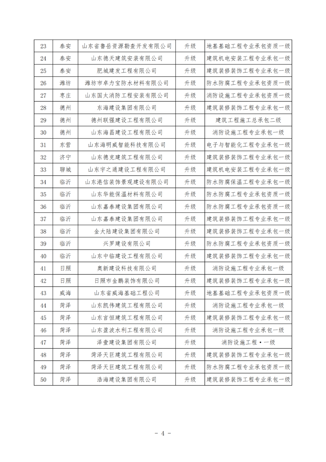 山东金泰建设有限公司升级资质予以核准。
