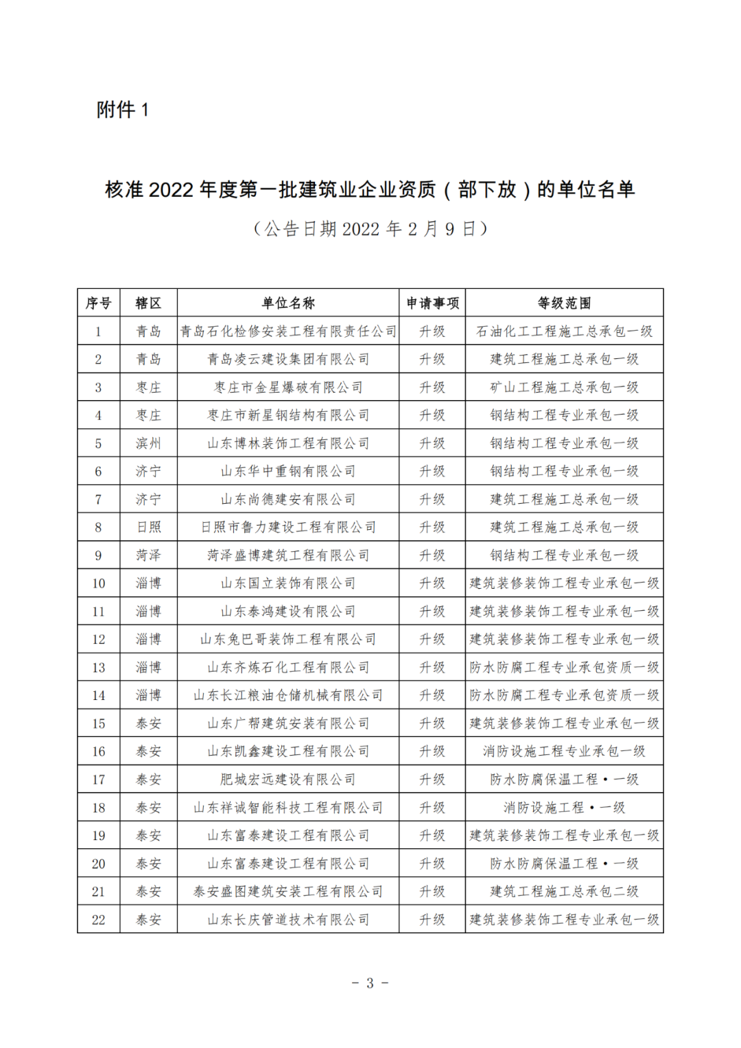 1.核准2022年度第一批建筑业企业资质(部下放)的单位名单(公告日期2022年2月9日)