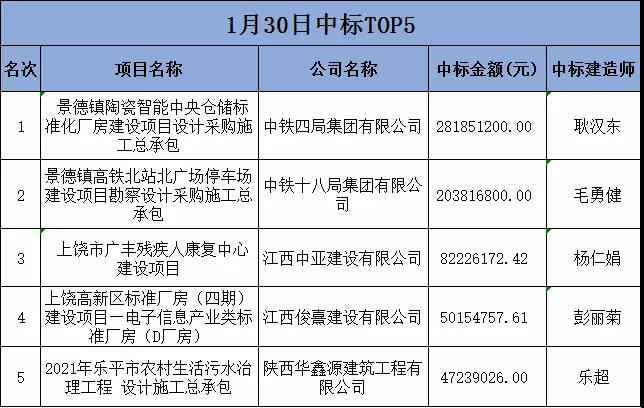 中铁四局集团有限公司以28185.12万元的报价中标“ 景德镇陶瓷智能中央仓储标准化厂房建设项目设计采购施工总承包”项目。
