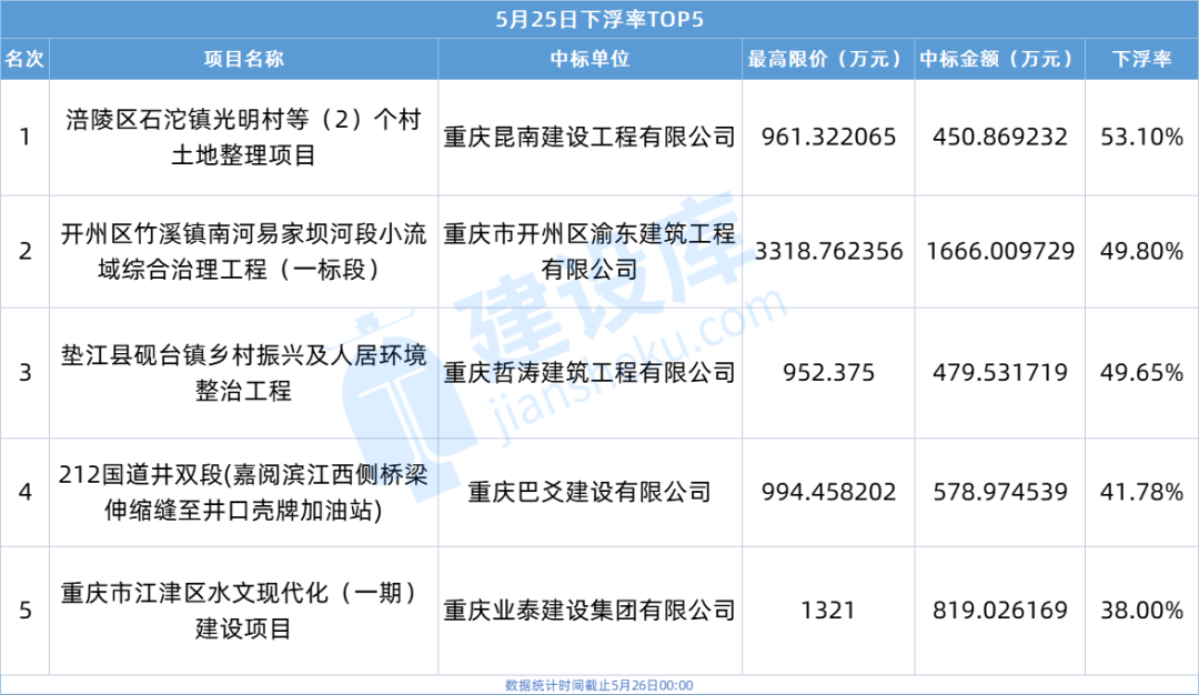 小tips:本文数据由建设库友情提供,数据源于重庆各大公共资源交易中心官方网站,信息真实可靠。