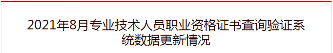 2021年度工程咨询(投资)专业技术人员(河北、福建)、土地登记代理人专业人员、环境影响评价工程师、计算机技术与软件专业技术资格(上半年)、经济专业技术资格(高级经济师合格证明)、监理工程师(除山西、湖南外)、银行业专业人员(上半年)等职业资格证书已开通查询验证服务。其中,工程咨询(投资)专业技术人员、土地登记代理人专业人员、银行业专业人员等职业资格证书查询结果为电子证书。