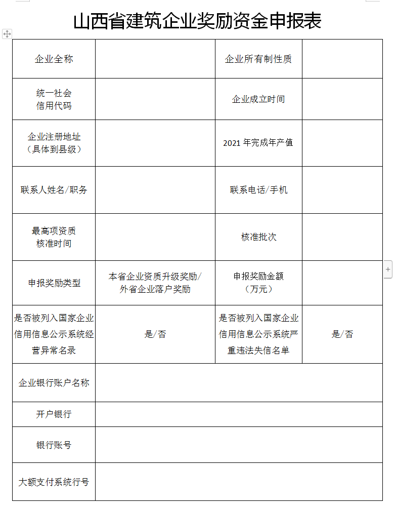 山西省住房和城乡建设厅 关于开展2022年度省级建筑业提质行动奖励资金申报的通知(第1115号)