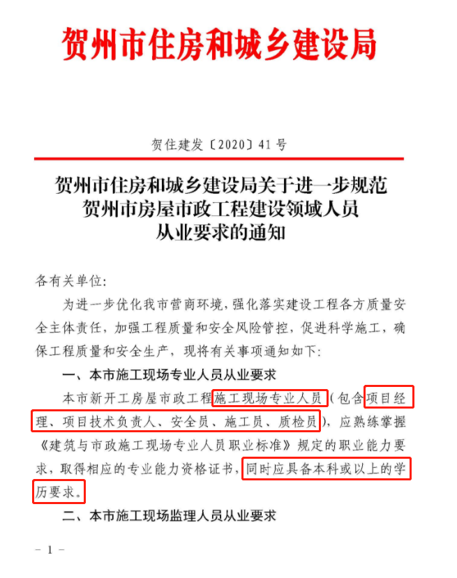 前段时间,南昌也发布通知,要求项目经理、项目技术负责人、安全员、施工员等也必须具备本科及以上学历。
