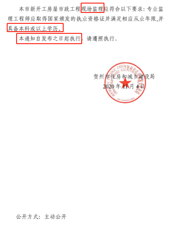 北京、上海、广州、重庆、天津已正式发文,非本科及以上学历不得担任总监理工程师/监理工程师。